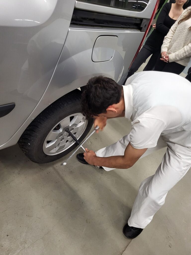 Einen Reifen zu wechseln dauert offensichtlich unterschiedlich lang. Auch hier waren die Jugendlichen überrascht, dass etwas, das sehr leicht aussieht doch etwas ist, das man üben muss.