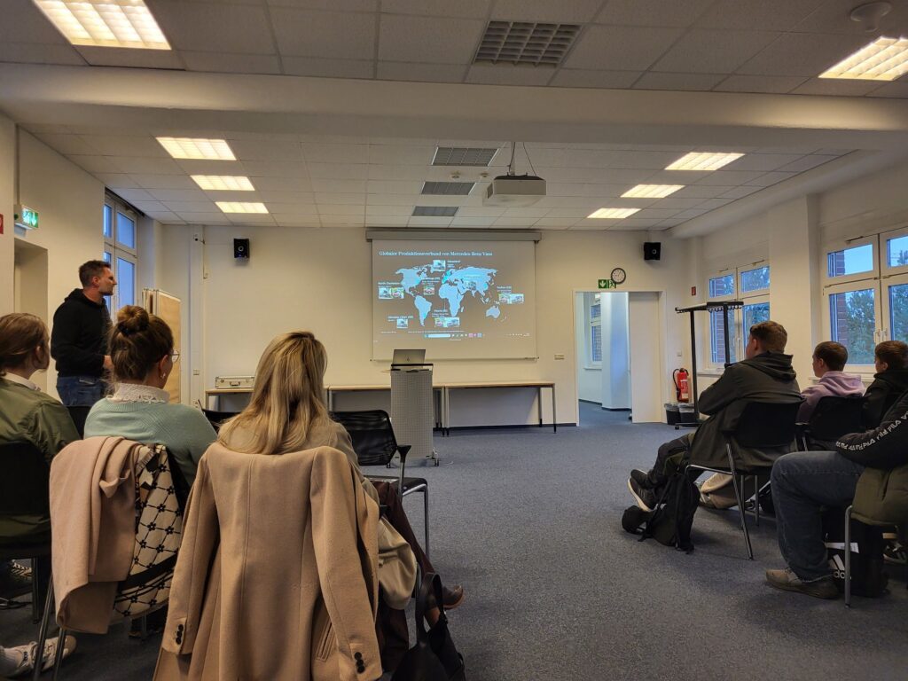 Zunächst erhielten die Schülerinnen und Schüler der 8. und 10. Klassen einige Informationen über den Standort Mercedes Benz Ludwigsfelde.