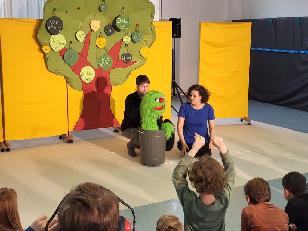 In der vergangenen Woche hatten die Kinder unserer 1.-5.Klassen Besuch von Viola und ihrem „magischen Friedensalphabet“ und konnten beim Zuschauen des Theaterstückes beobachten, wie man mit Streit, Ausgrenzung und anderen Problemen umgehen kann.